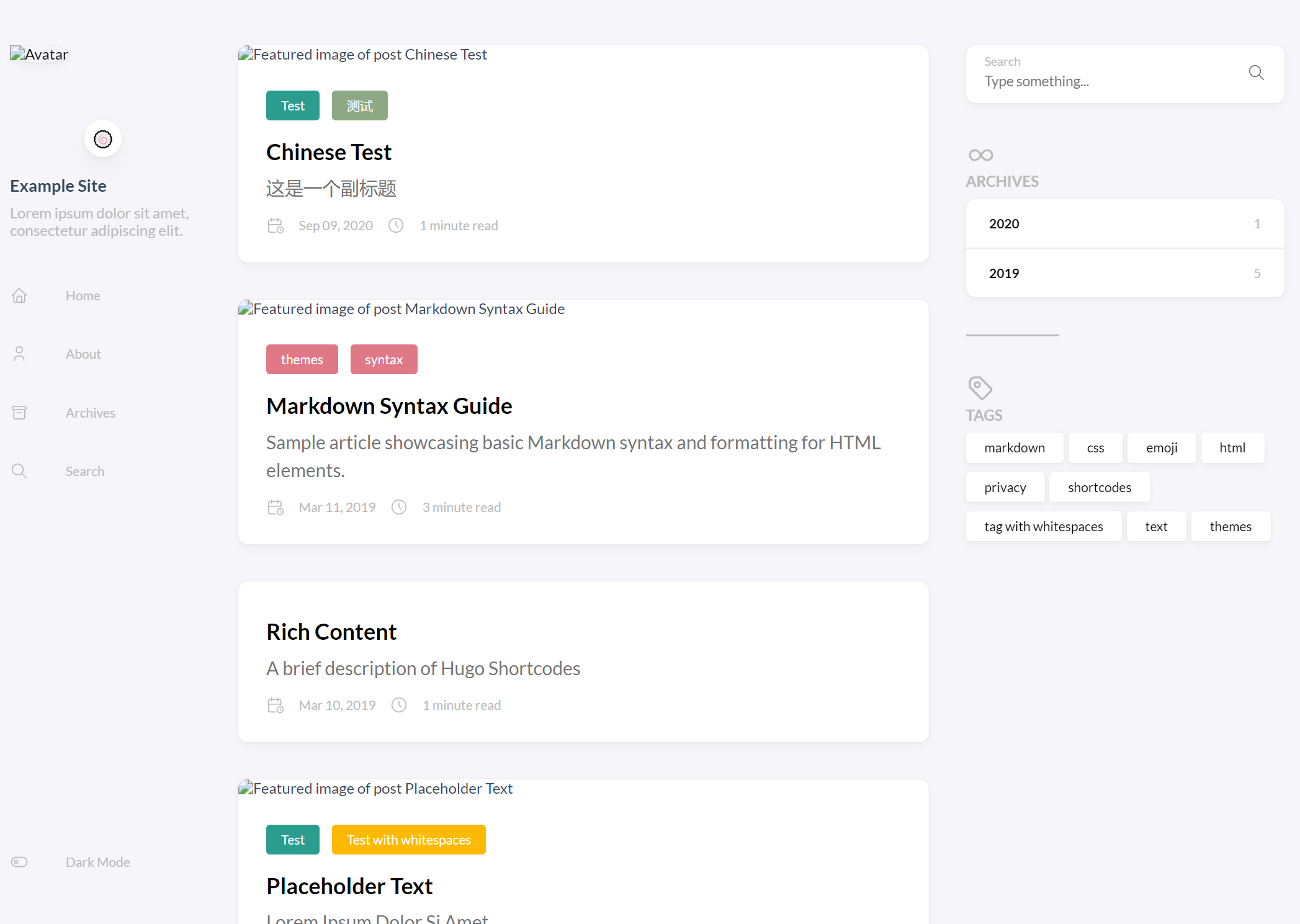 - 访问 Hugo 本地服务器(默认1313端口)如果一切安好,你可以看到如下画面: