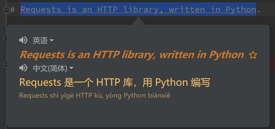 这是一款能够嵌入在 Pycharm 中的翻译软件,通过它,我们可以实现代码上下文的「划词翻译」「语义文档」等比较方便的功能。