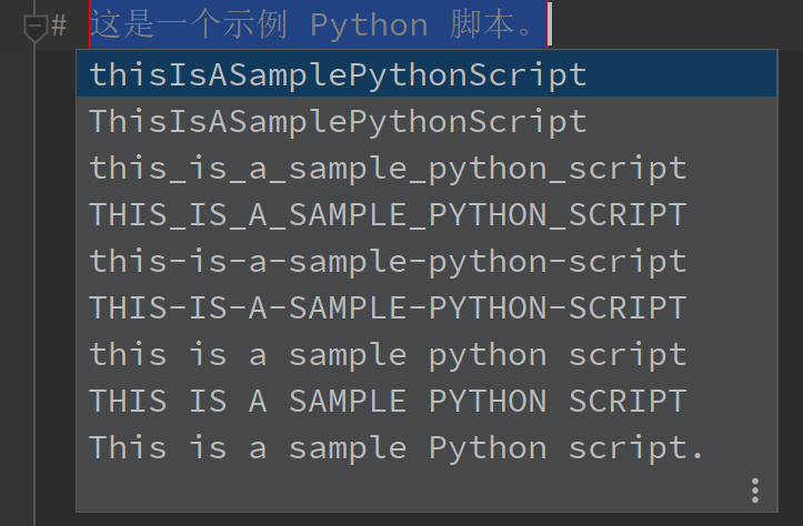 Match case根据特征字符进行编码补全。我们反选后,我们的代码中仅需出现目标对象/方法/函数的任意大小写字符仅可触发推荐补全,非常方便。Python 编程规范中,习惯上使用大驼峰命名类变量(Class),使用蛇形法命名方法(Method)和函数(function)。