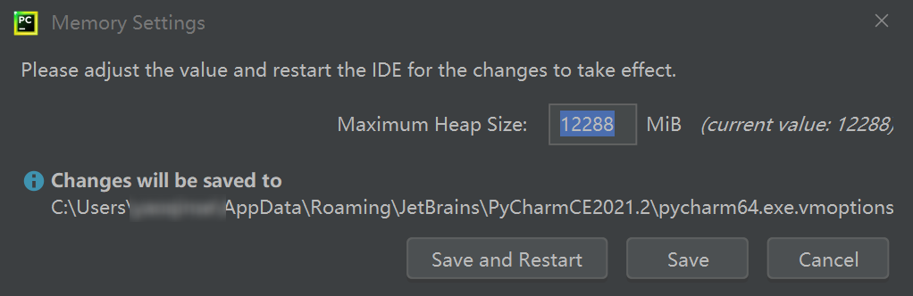 Maximun Heap Size:12288MiB,参考设备的物理内存为 16GB,根据你自己的情况设置。此处需要留意 MiB 和 MB 是不一样的计量单位,详见 MiB to MB Conversion。