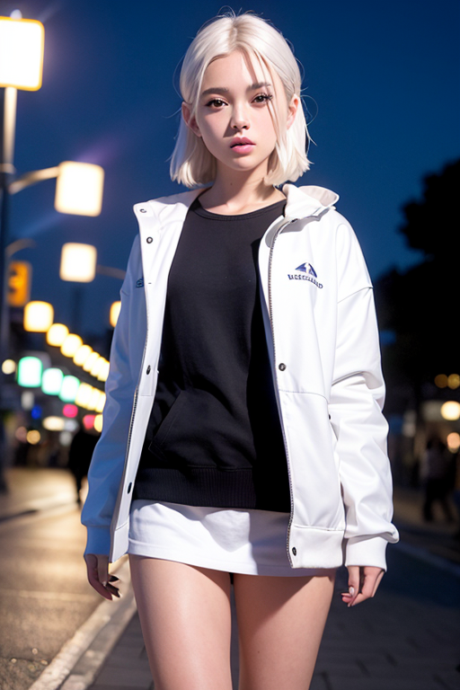 ![]() | (8k, RAW photo, best quality, masterpiece:1.2), (realistic, photo-realistic:1.37), ultra-detailed,full body,1 girl, solo,beautiful detailed sky,detailed tokyo street,night,beautiful detailed eyes,beautiful detailed lips,professional lighting, photon mapping, radiosity, physically-based rendering,extremely detailed eyes and face, beautiful detailed eyes,light on face,cinematic lighting, short jacket,hoodie,school uniform,1girl,full body,full-body shot,see-through,looking at viewer,outdoors,((white hair)), |